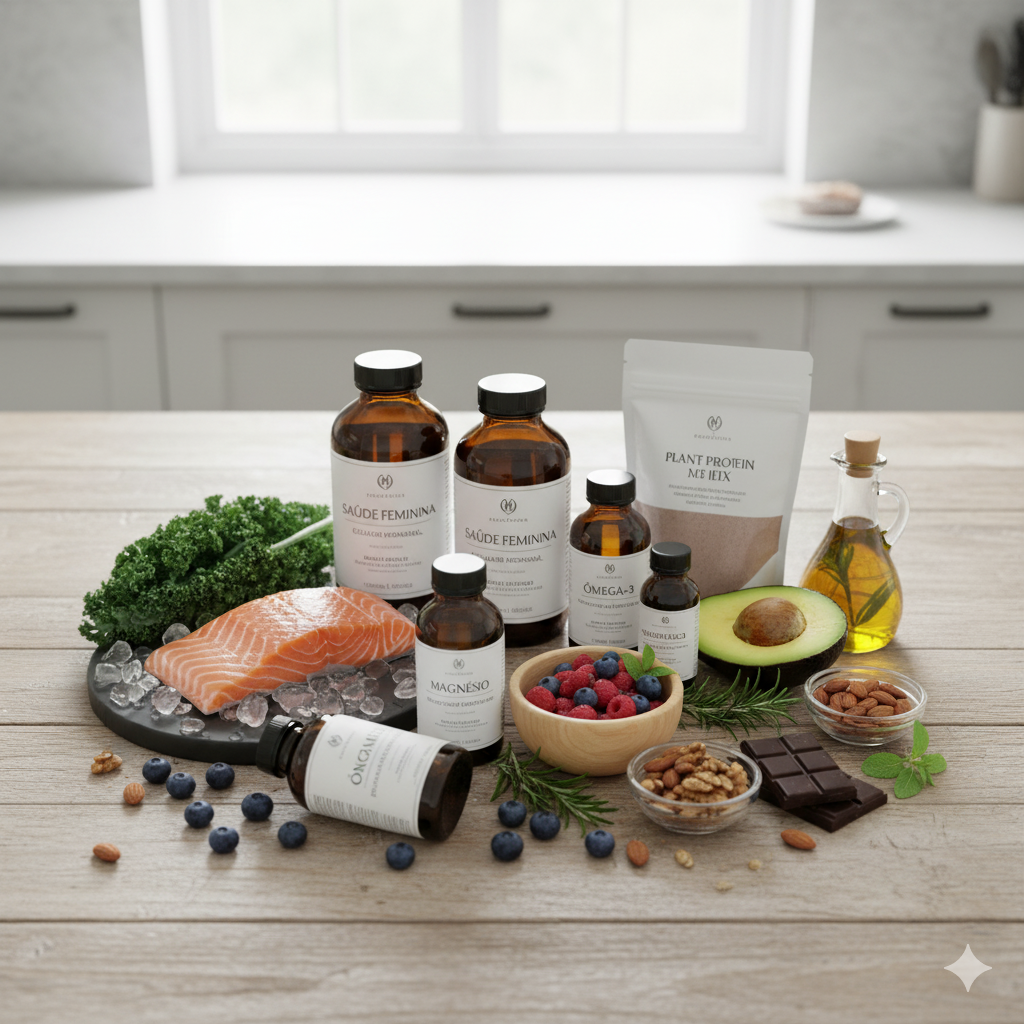 Além dos alimentos para ciclo menstrual, alguns suplementos podem ser indicados por profissionais: